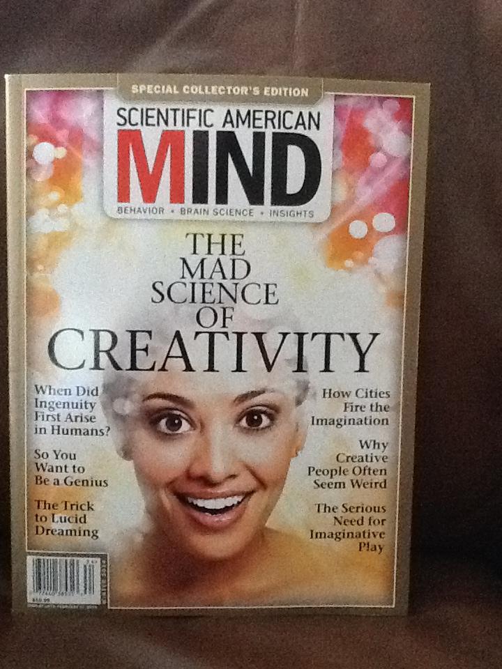 This is a great issue on display until February 2014. All about CREATIVITY! Page 79 begins a fascinating study on the serious need for PLAY. Free, imaginative play is crucial for normal social, emotional and cognitive development. It makes us better adjusted, smarter and less stressed. Kids and animals that do not play when they are young may grow into anxious, socially maladjusted adults. Play teaches kids to better communicate with one another.The creative aspect of play is key because it challenges the brain more than following predetermined rules. Elkind warns that, “Play has to be reframed and seen not as an opposite to work but as a compliment.” He also says, “Curiosity, imagination and creativity are like muscles: if you don’t use them, you lose them.”